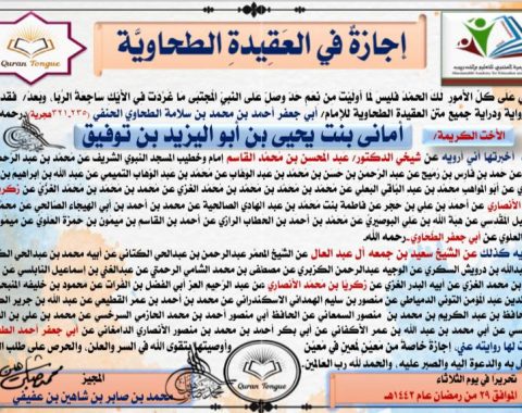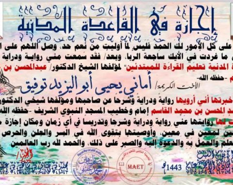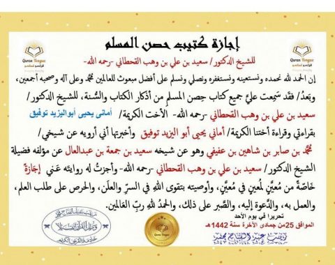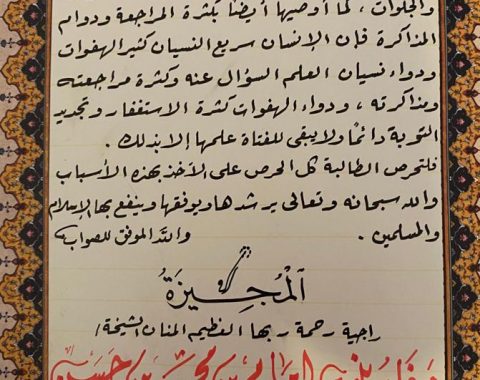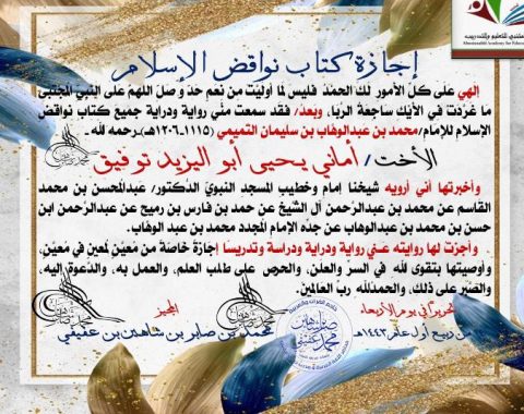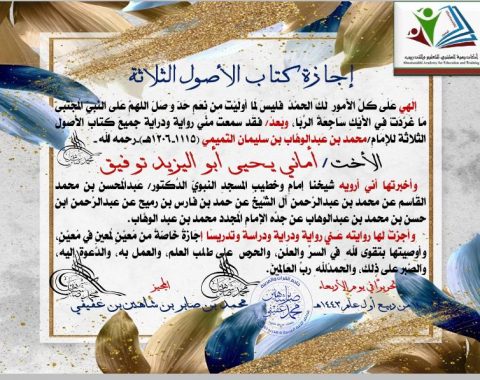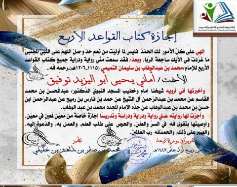 Ijaaza für das Buch “Die vier Grundlagen” von Imam Muhammad Ibn Abdul Wahhab