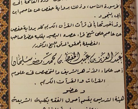 Ijaaza “Usul ath-Thalatha” vom Imam Muhammad Ibn Abdul Wahhab
