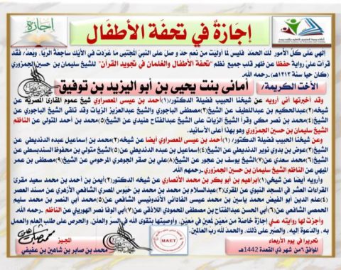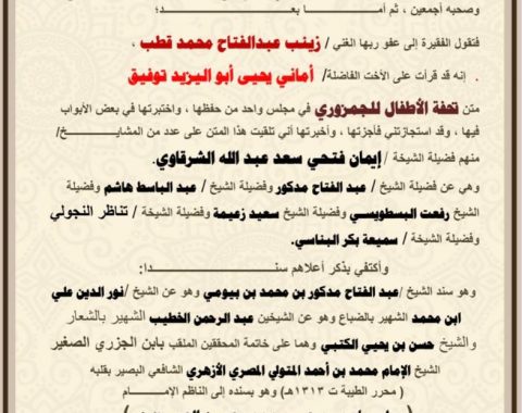 Ijaaza Matn Tuhfat al-Atfal lil-Jamzuriy