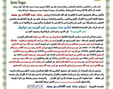 Ijaaza “az-Zamzamiyy” über Tafsir und Quran-Wissenschaft