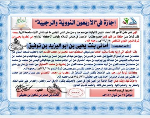 Ijaaza Al-Arbaoun Al-Nawawiyya wa Al-Rajabiyya